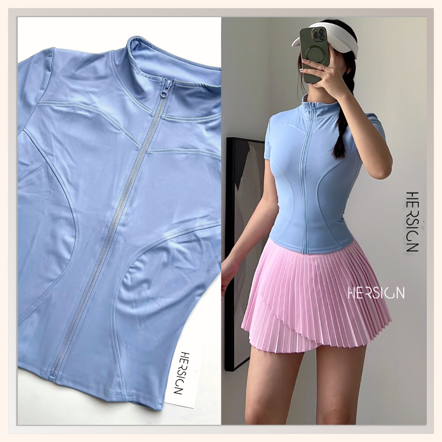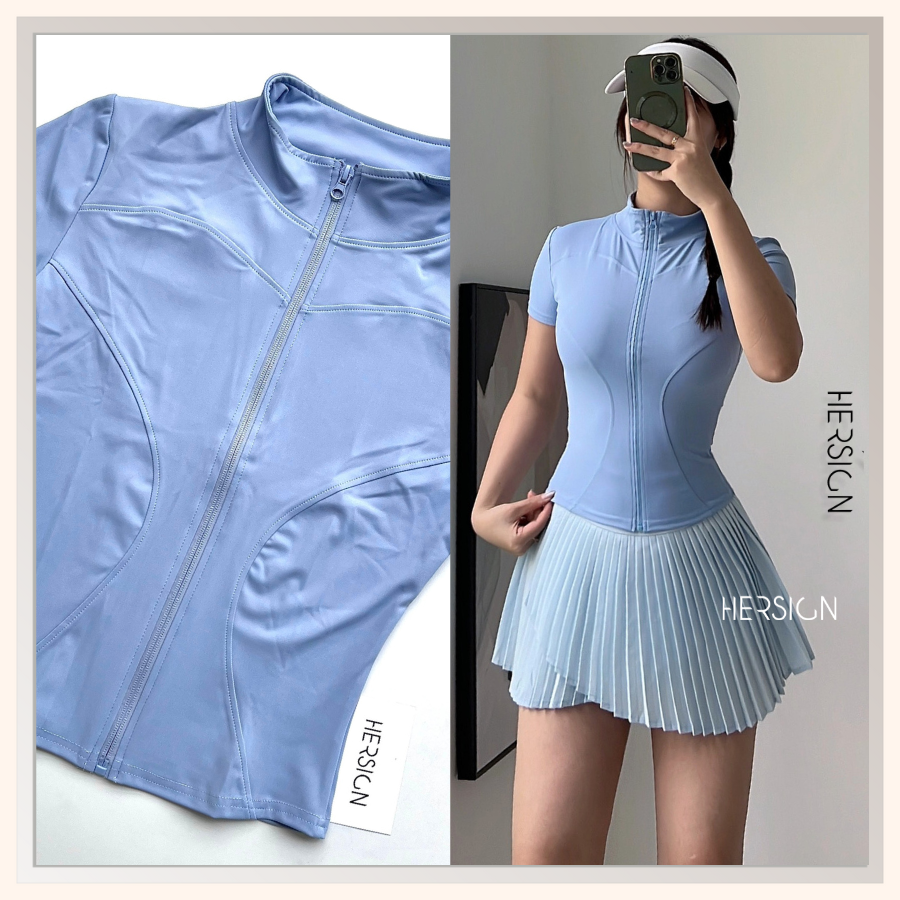 _Thiết kế áo ngắn tay 1 lớp, có khóa kéo. Áo không mút đệm.