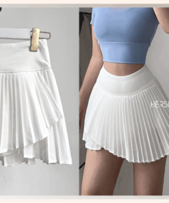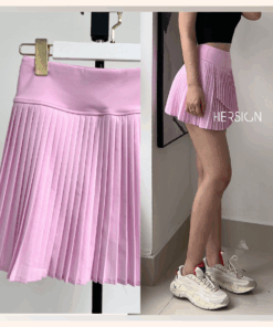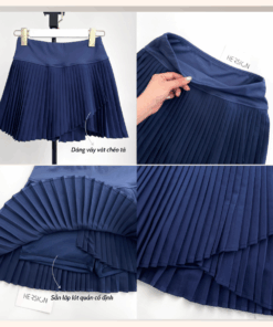 _Chân váy 2 lớp. Lớp ngoài xếp ly form xòe tạo độ phồng. Váy liền quần giúp thoải mái khi vận động.