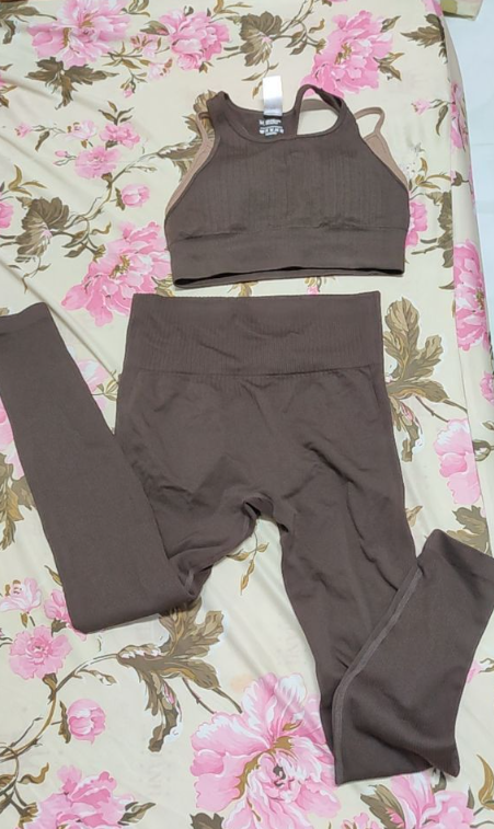 - Set áo bra và quần legging cạp cao co dãn hoàn hảo