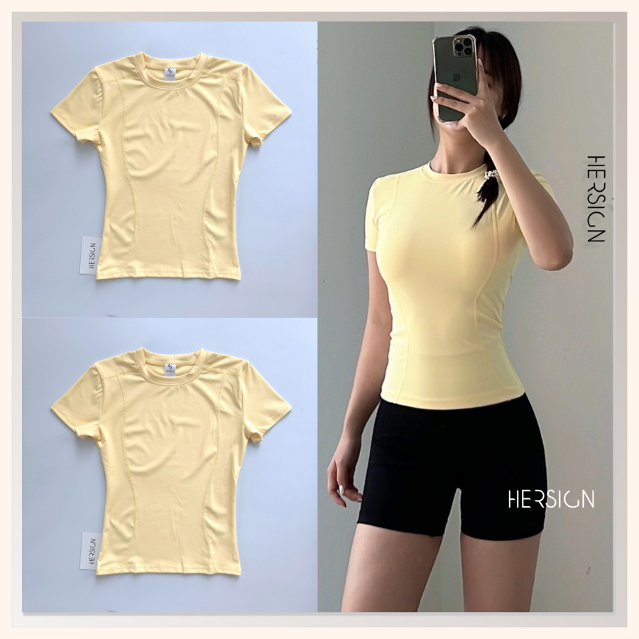 _Thiết kế áo thun trơn, vai ngang, có lượn sóng ôm dáng, hỗ trợ lên form đẹp.