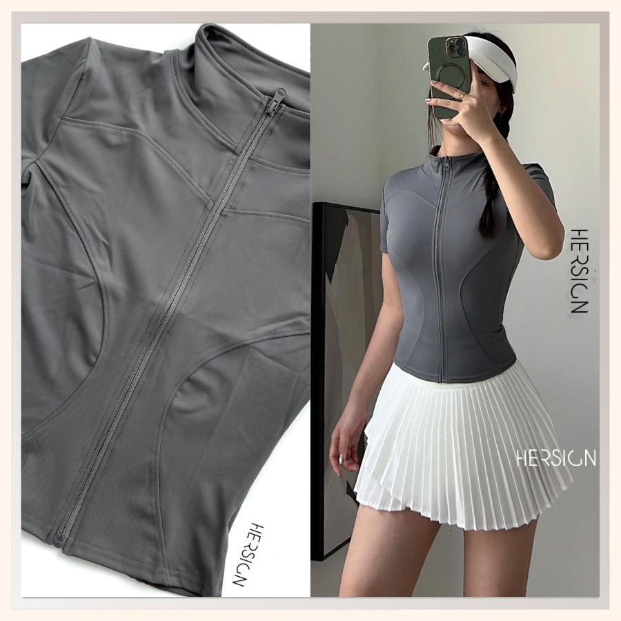 _Thiết kế áo ngắn tay 1 lớp, có khóa kéo. Áo không mút đệm.