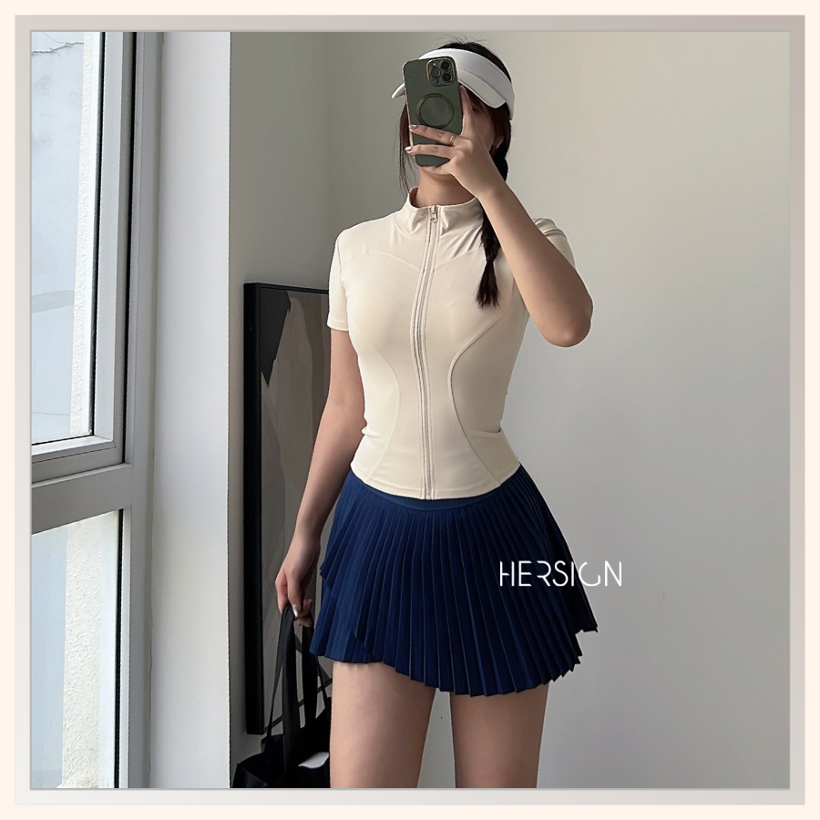 _Thiết kế áo ngắn tay 1 lớp, có khóa kéo. Áo không mút đệm.