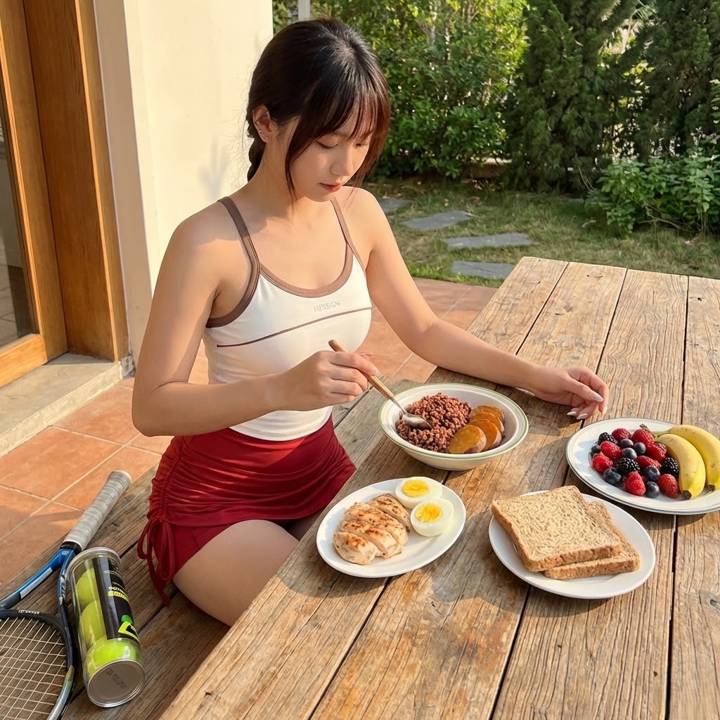 2. Ăn gì giữa các giờ nghỉ (Changeover)? Các tay vợt chuyên nghiệp thường cắn một miếng chuối hoặc ăn vài quả chà là mỗi khi đổi sân. Đây là nguồn đường tự nhiên hấp thu thẳng vào máu, giúp não bộ tỉnh táo và cơ bắp hồi phục tức thì.