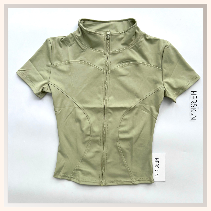_Áo thể thao ngắn tay, có khoá kéo. ÁO KHÔNG MÚT ĐỆM.