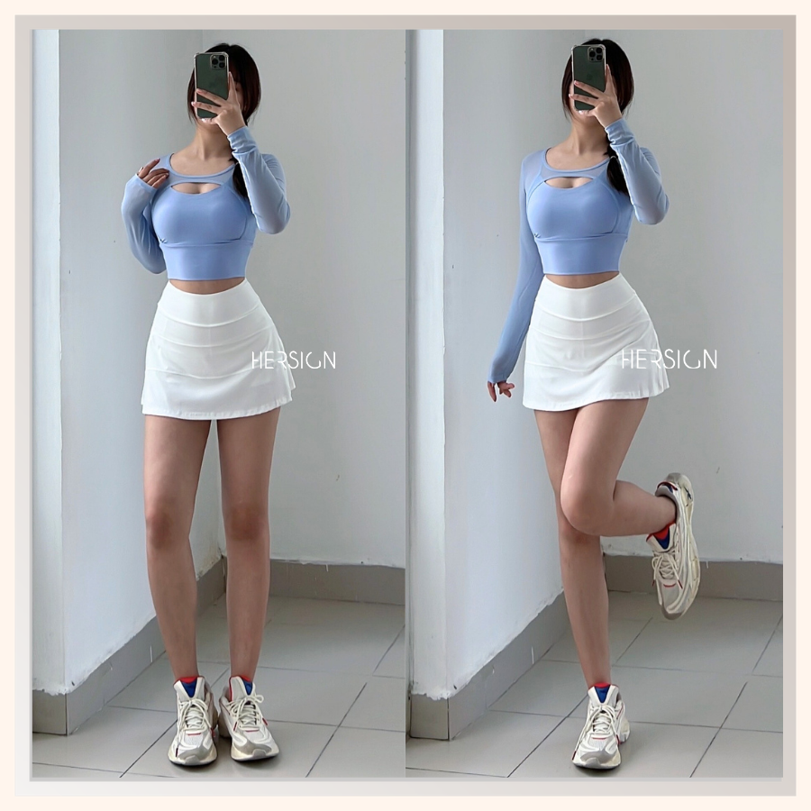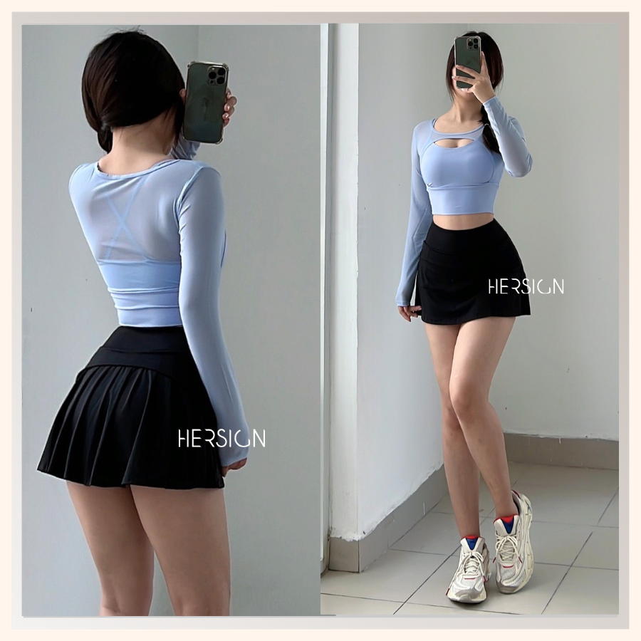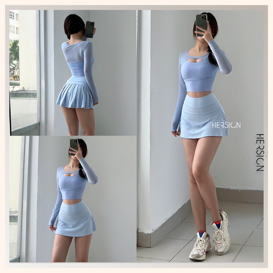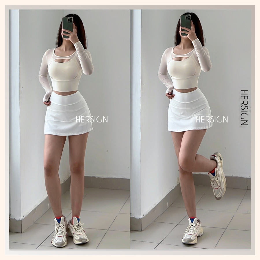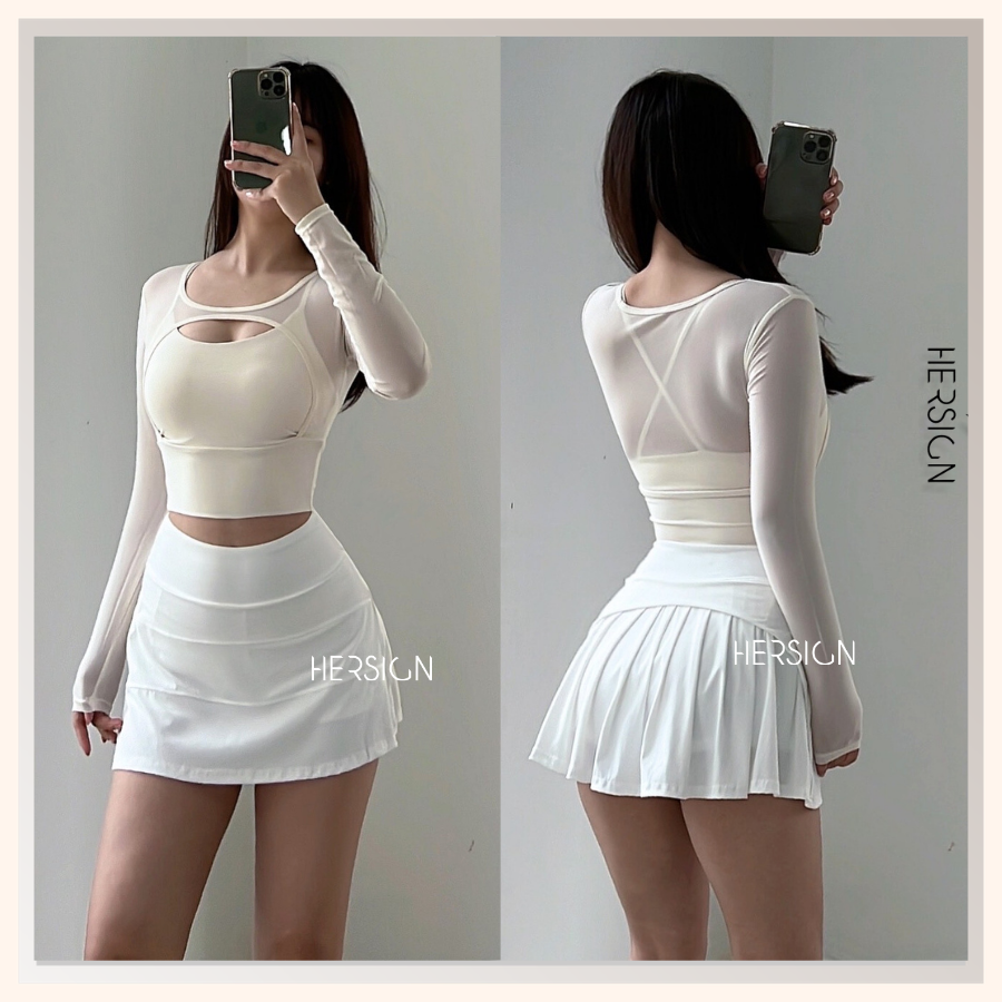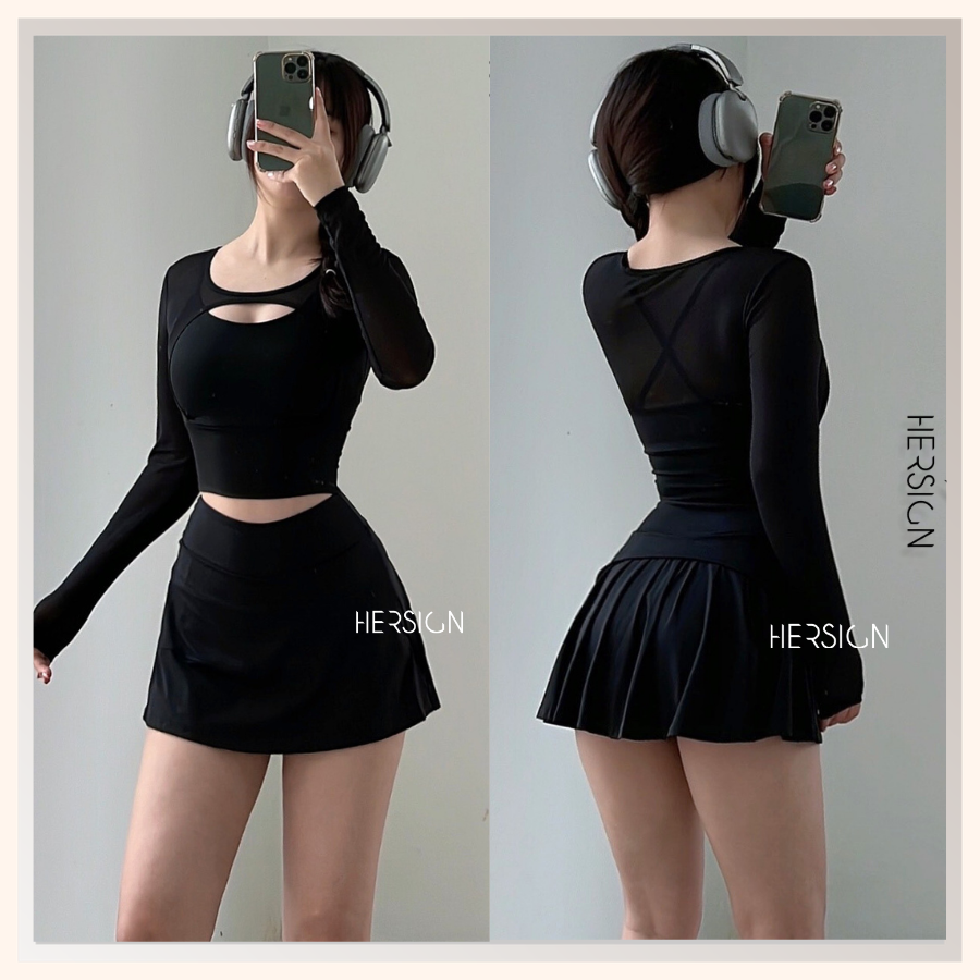 _Quy cách: 01 áo croptop dài tay +01 chân váy thể thao