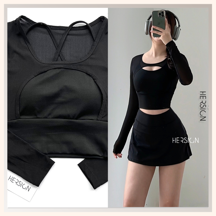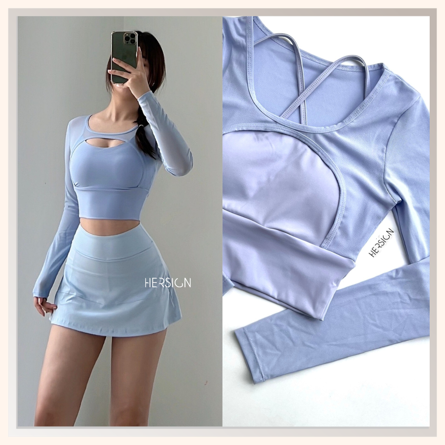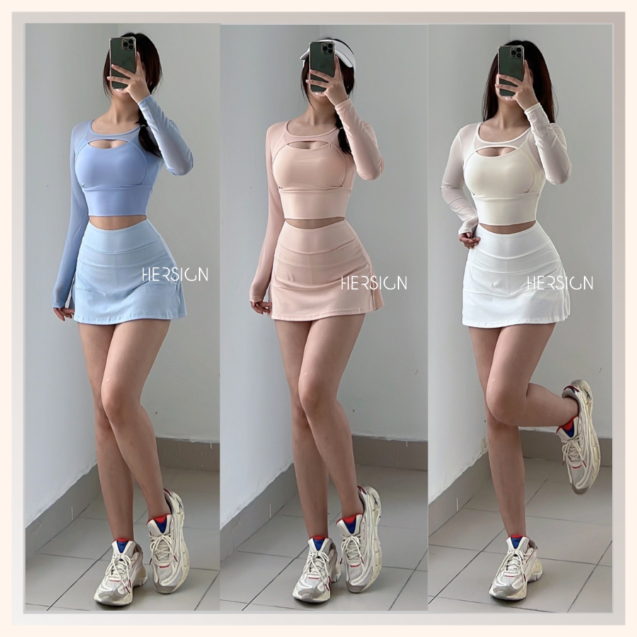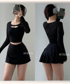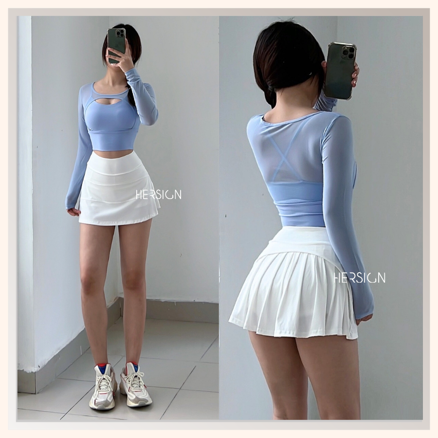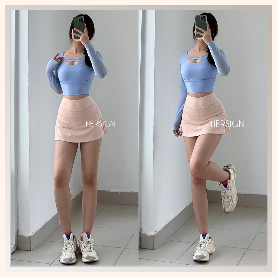 _Quy cách: 01 áo croptop dài tay +01 chân váy thể thao