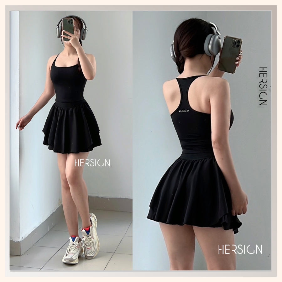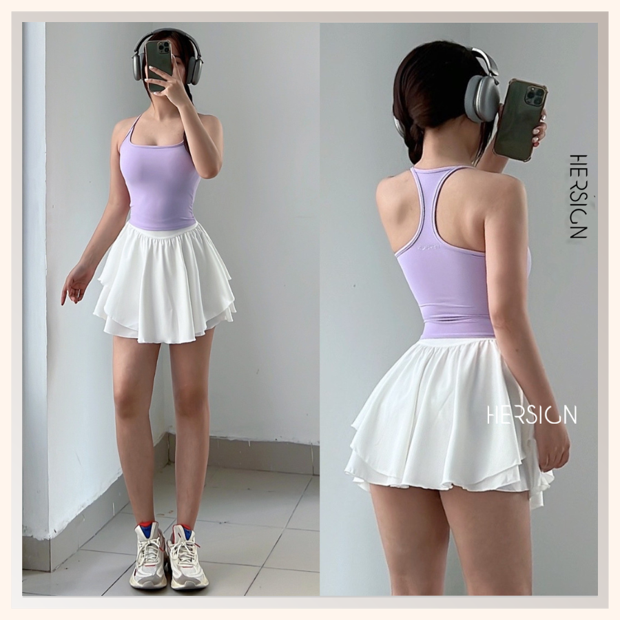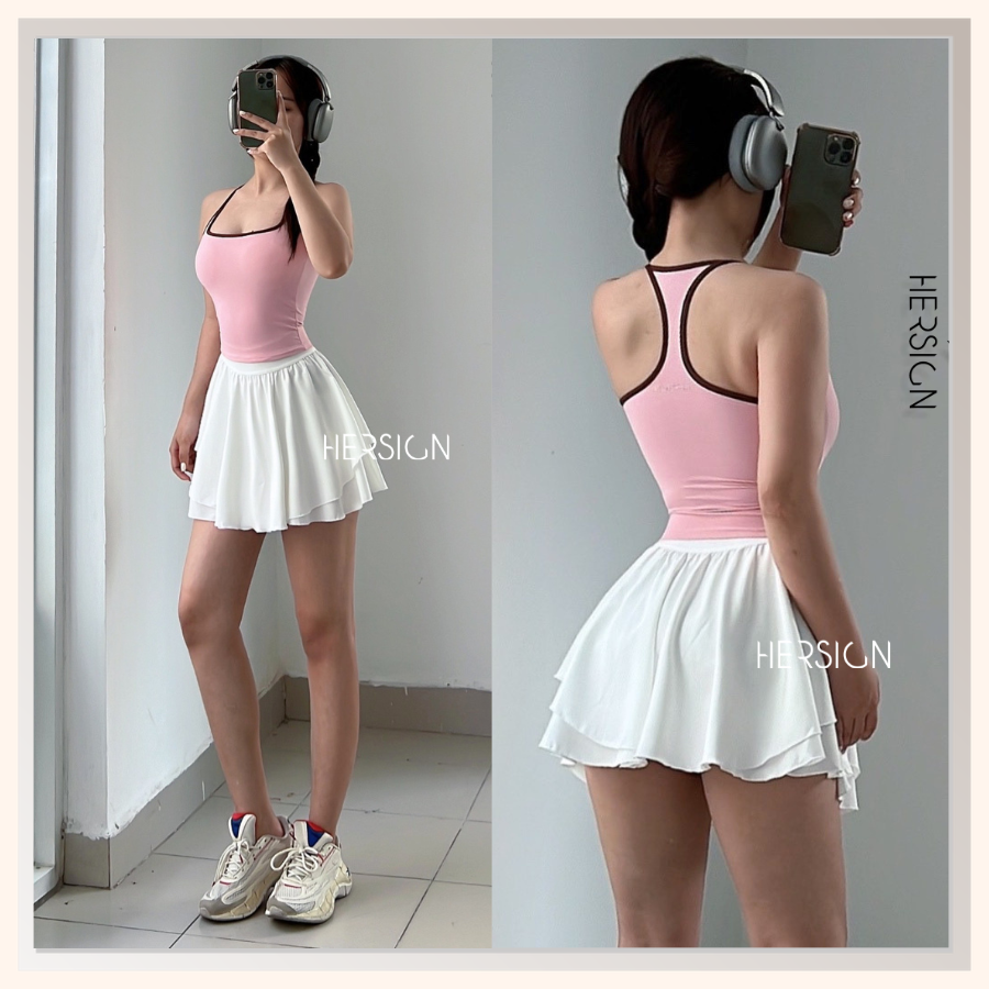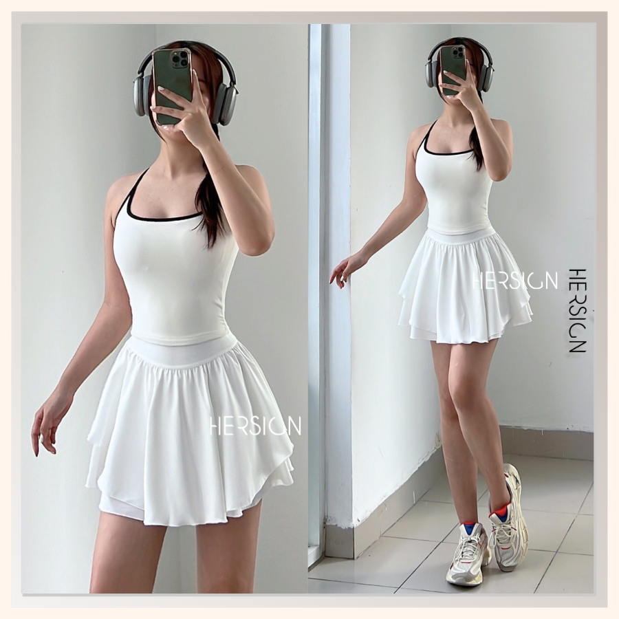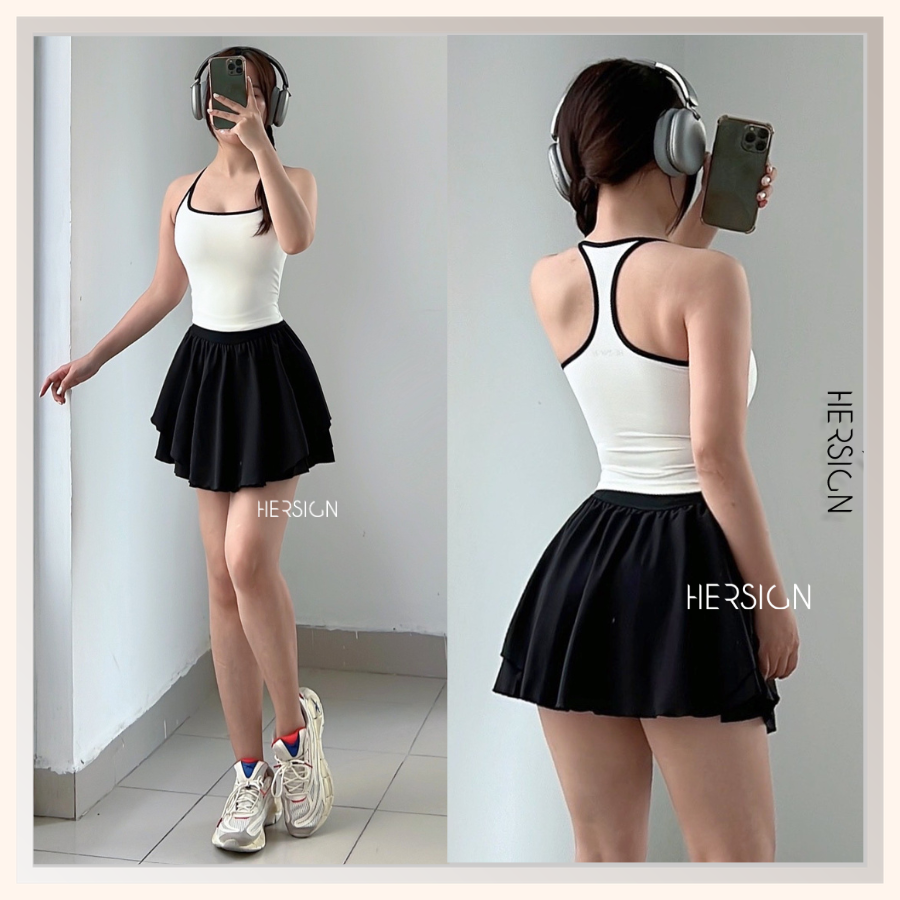 _Quy cách: 01 áo tanktop thể thao ôm dáng + 01 chân váy xòe
