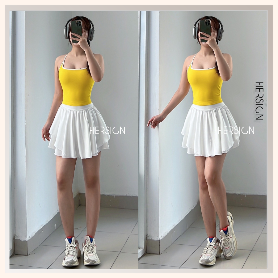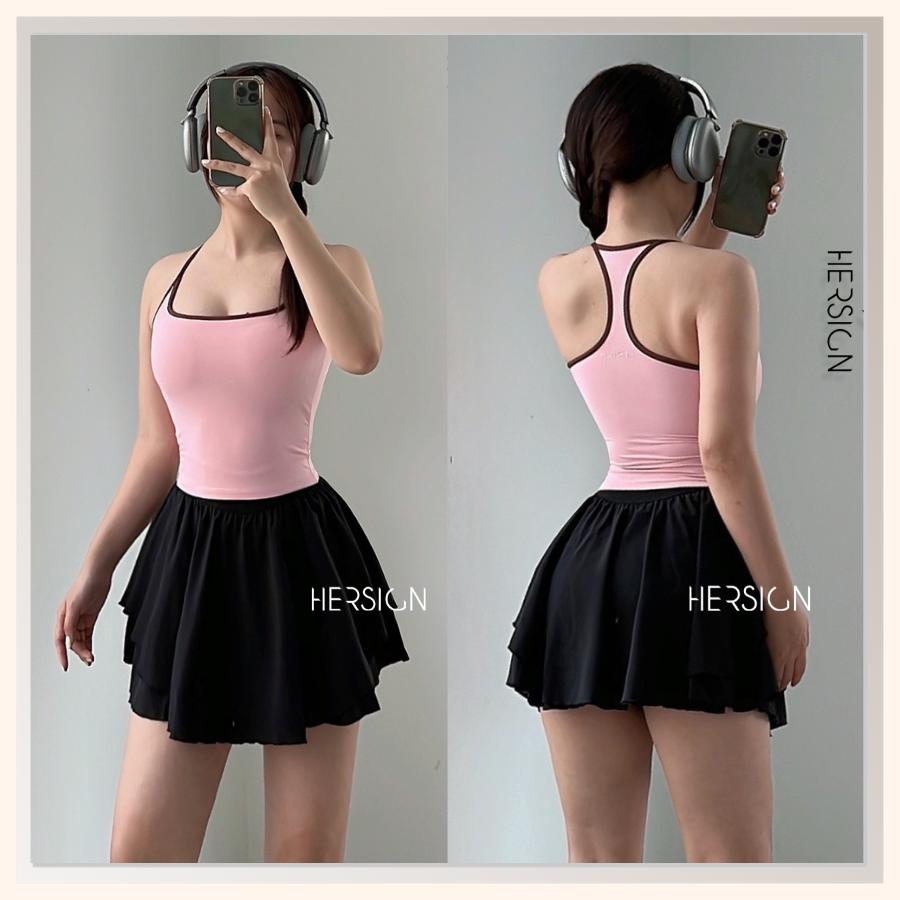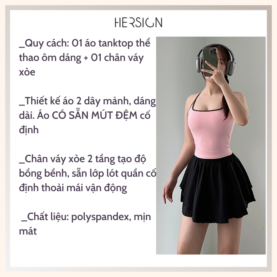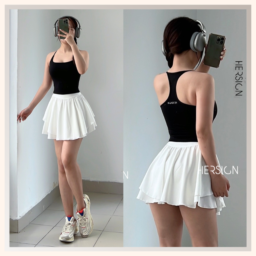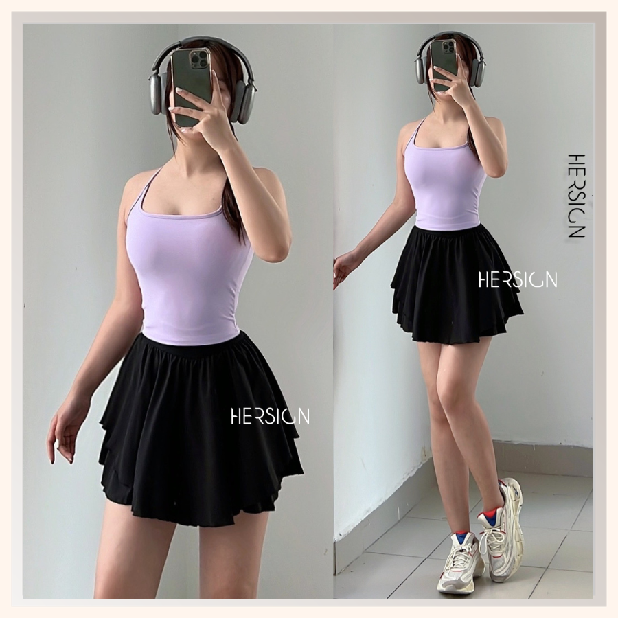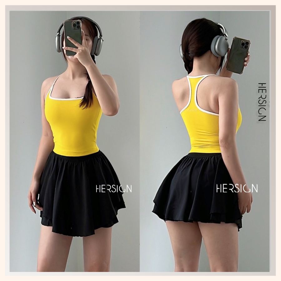 _Quy cách: 01 áo tanktop thể thao ôm dáng + 01 chân váy xòe