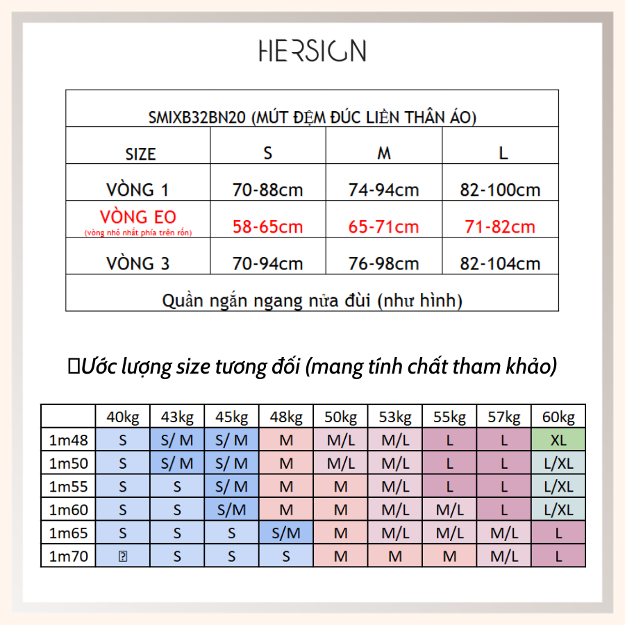 HƯỚNG DẪN CHỌN SIZE: Sản phẩm có 3 size S M L, bạn có thể tham khảo thêm bảng size ở phần hình ảnh sản phẩm và ib cho HERSIGN nếu cần thêm sự hỗ trợ