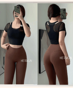 _Set áo croptop dài tay và quần legging dài ôm dáng