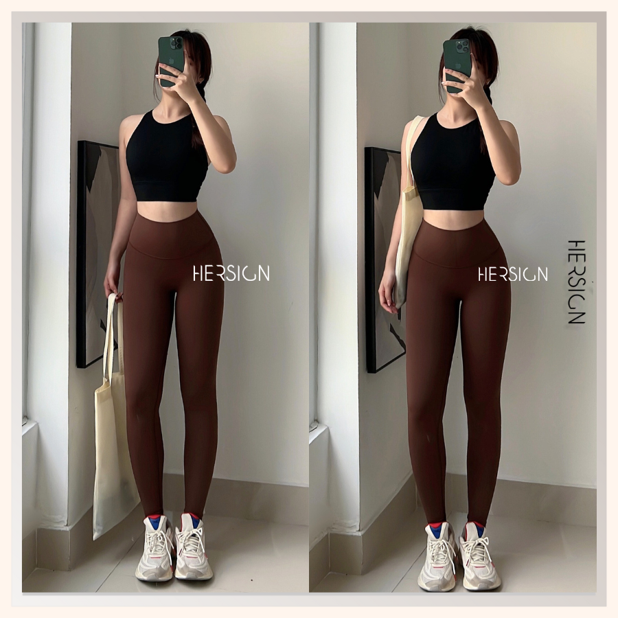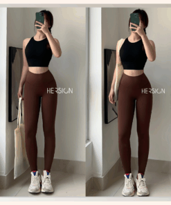 _Quần legging trơn mịn, lưng cao hỗ trợ thu nhỏ eo hiệu quả. Lưng quần có 4 lớp phía sau ôm dáng không lộ ngấn. LƯU Ý Quần không có chun sau.