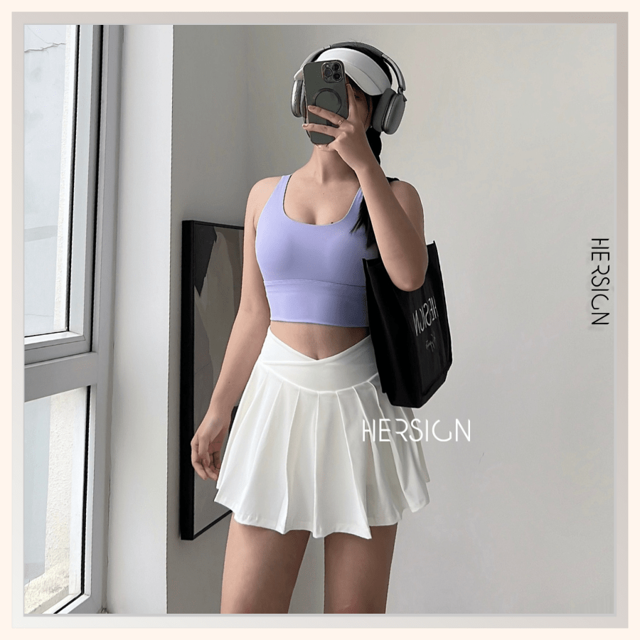 - Quy cách: 01 áo bra + 01 chân váy thể thao