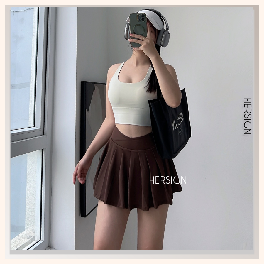 - Chân váy 2 lớp, váy ngoài xếp li xoè mềm mại. Lớp quần đùi bảo hộ bên trong ôm dáng. Chất liệu polyspandex mềm mại.