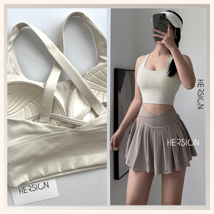 - Quy cách: 01 áo bra + 01 chân váy thể thao