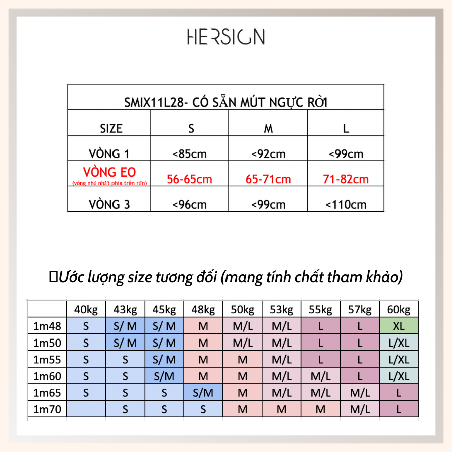 HƯỚNG DẪN CHỌN SIZE: Sản phẩm có 3 size S M L, bạn có thể tham khảo thêm bảng size ở phần hình ảnh sản phẩm và ib cho HERSIGN nếu cần thêm sự hỗ trợ