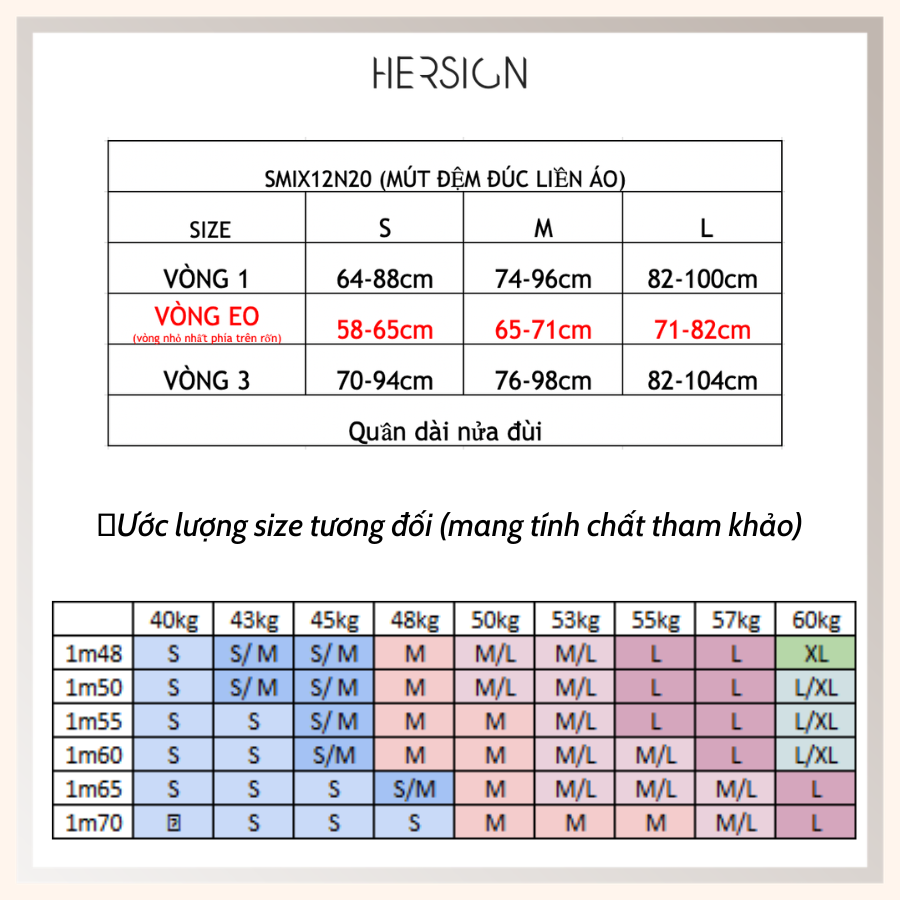 HƯỚNG DẪN CHỌN SIZE: Sản phẩm có 3 size S M L, bạn có thể tham khảo thêm bảng size ở phần hình ảnh sản phẩm và ib cho HERSIGN nếu cần thêm sự hỗ trợ