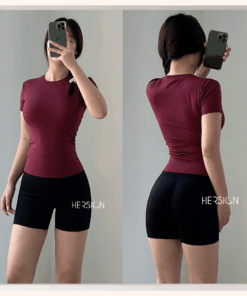 _Thiết kế áo thun trơn, tay ngắn. Áo trơn vai ngang, có lượn sóng ôm dáng, hỗ trợ lên form đẹp.