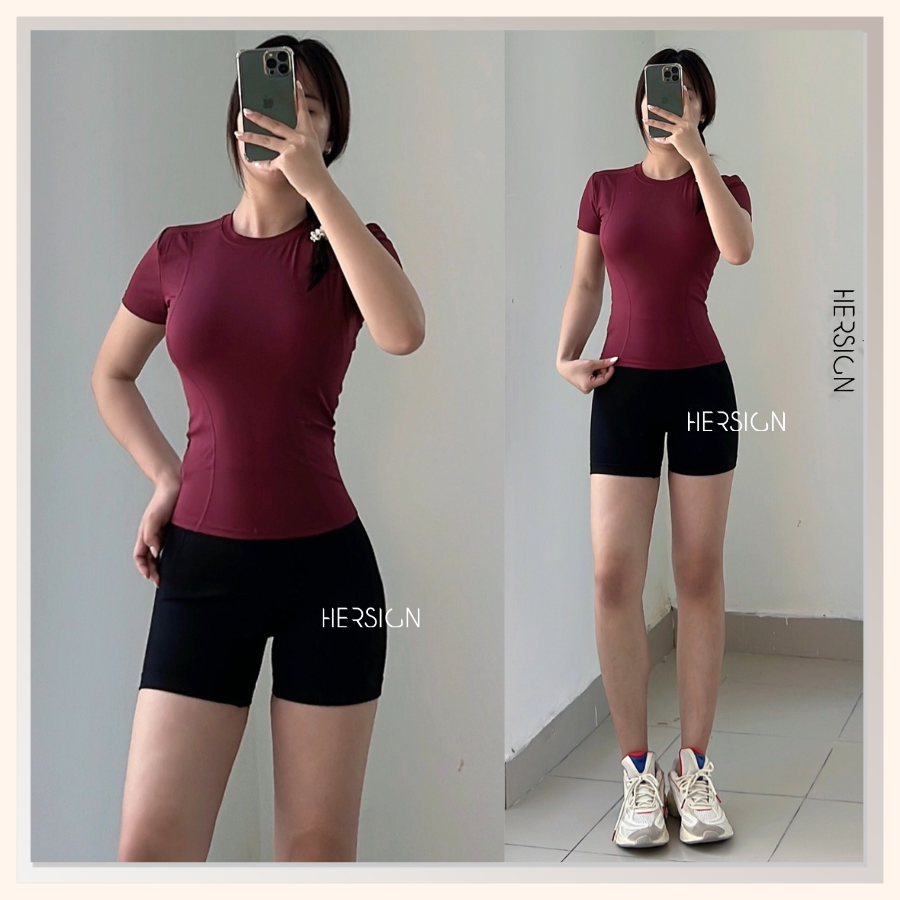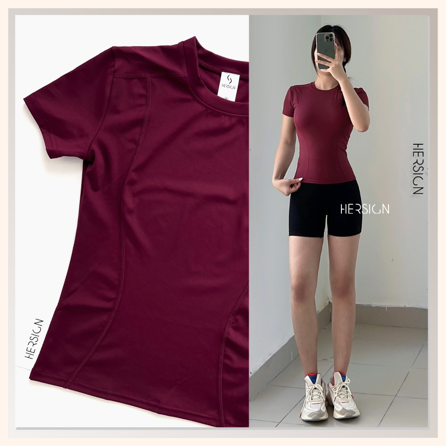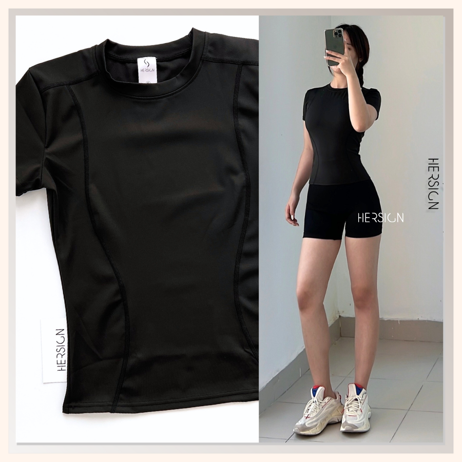 _Thiết kế áo thun trơn, tay ngắn. Áo trơn vai ngang, có lượn sóng ôm dáng, hỗ trợ lên form đẹp.