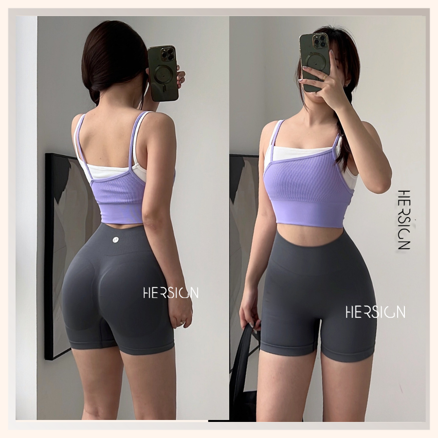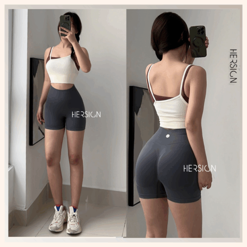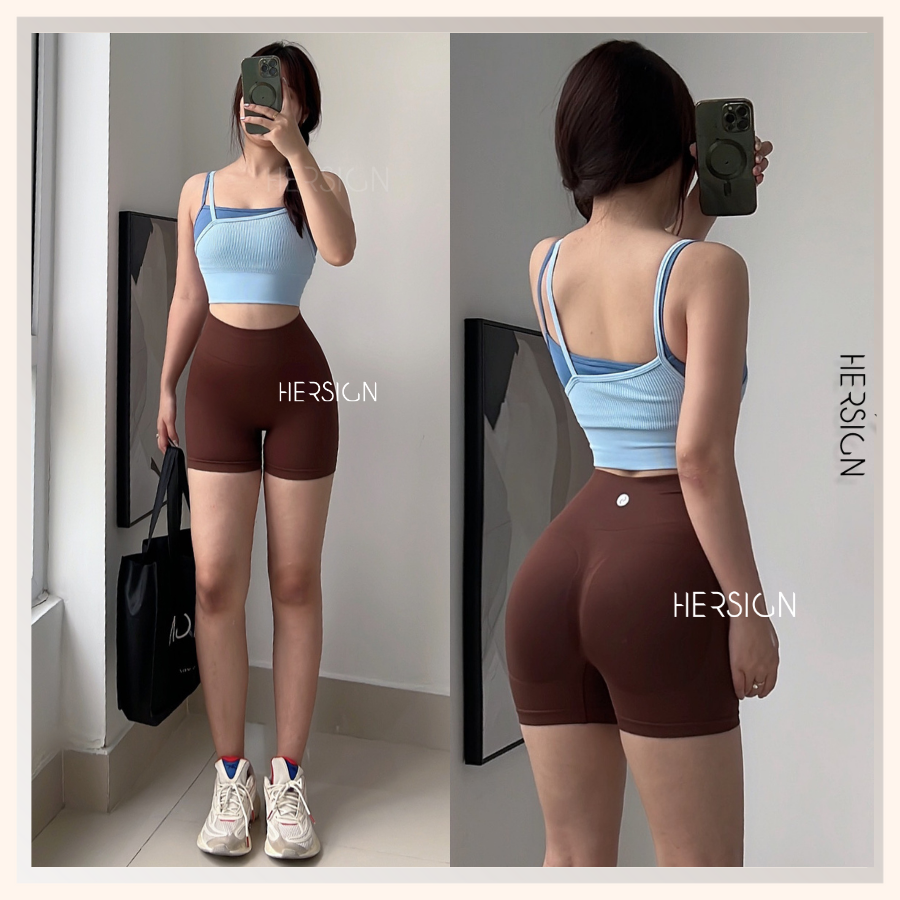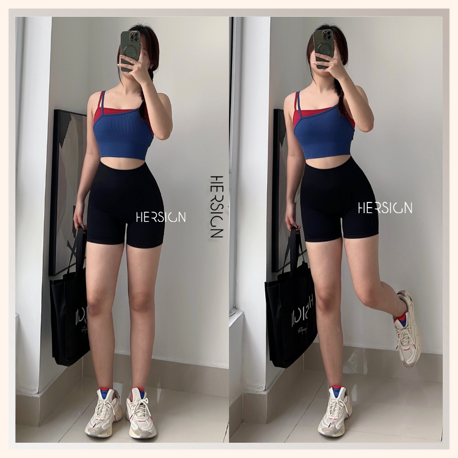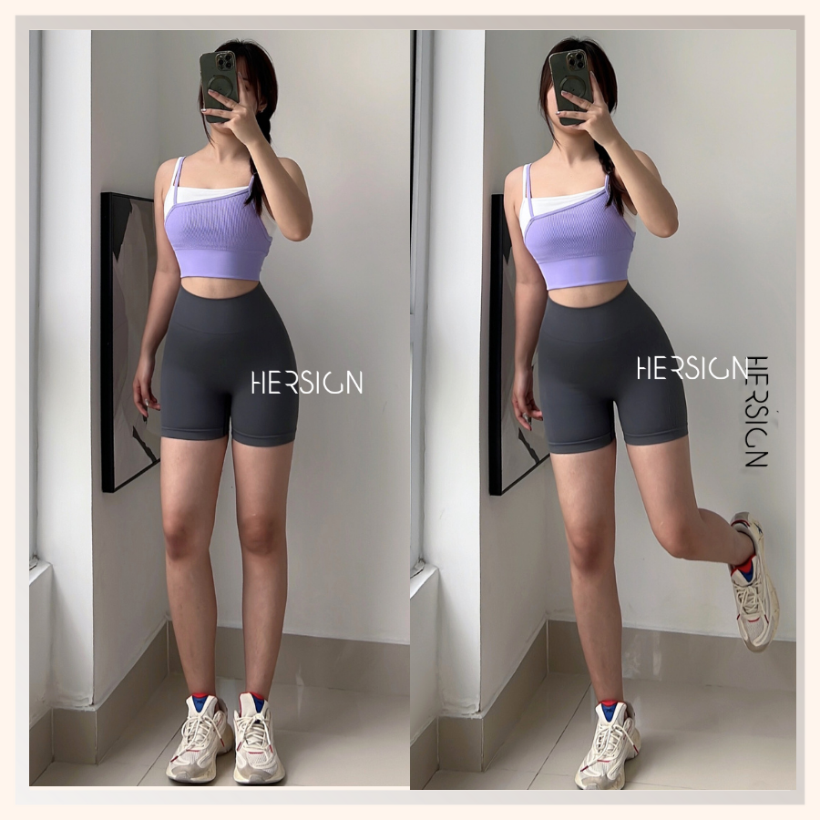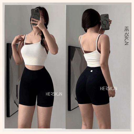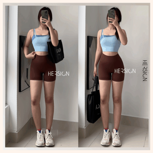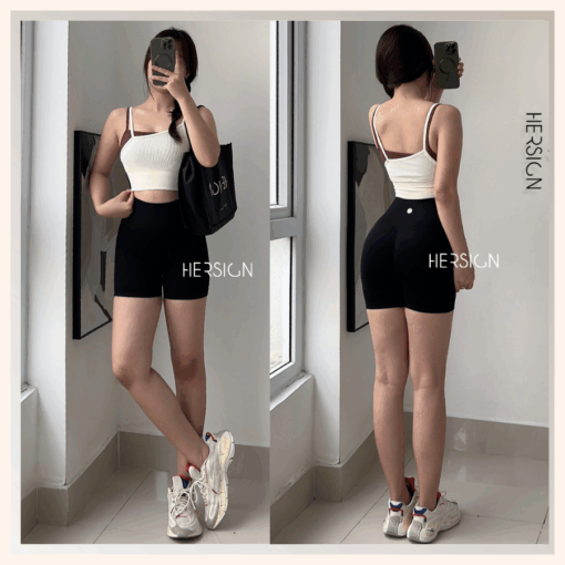 _Quần đùi lưng cao ôm eo và hỗ trợ siết bụng khi tập luyện. Quần CÓ CHUN SAU cho vòng 3 cân đối.