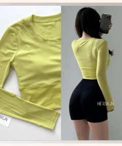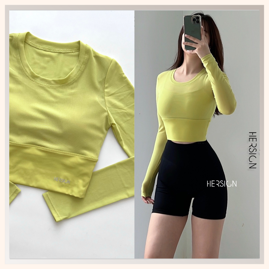 _Áo croptop dài tay 2 lớp. Chất polyspandex cao cấp.