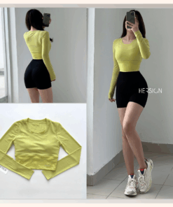 _Set gồm: Áo croptop dài tay và quần đùi lưng cao
