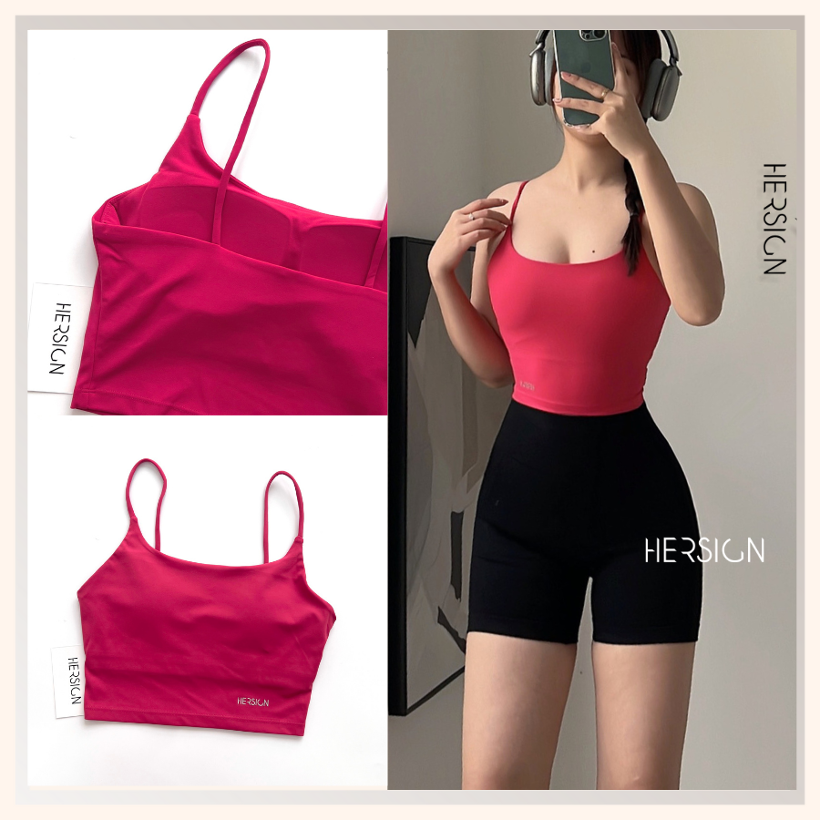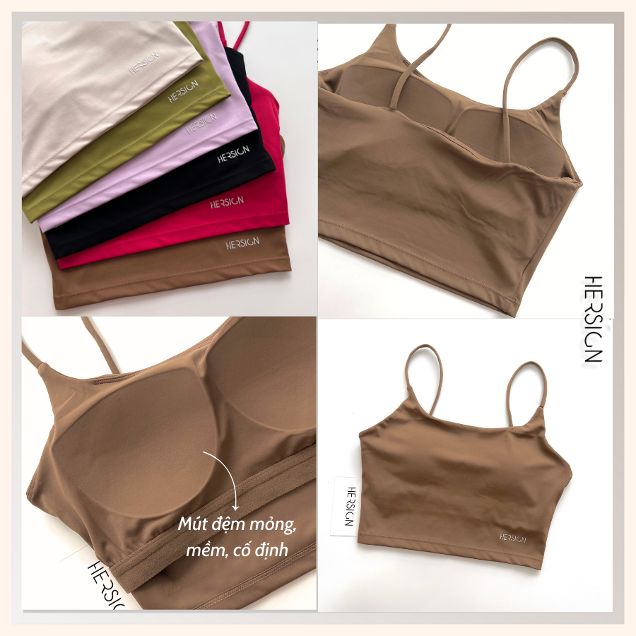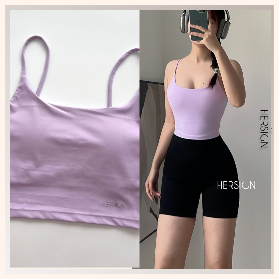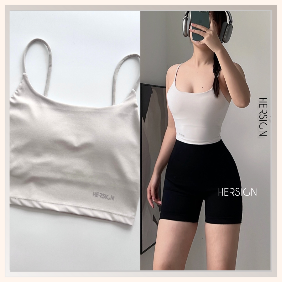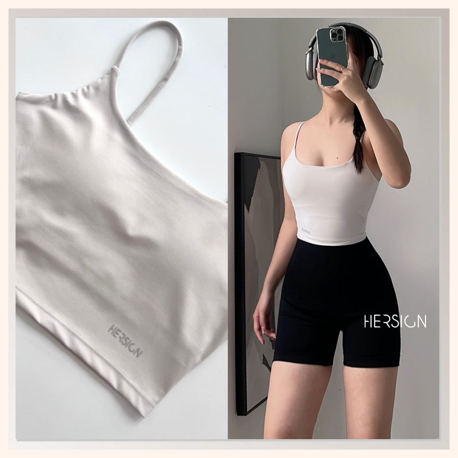 _Áo croptop 2 dây mảnh, chất liệu polyspandex mịn lì.