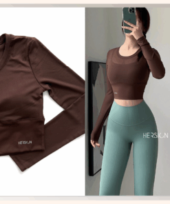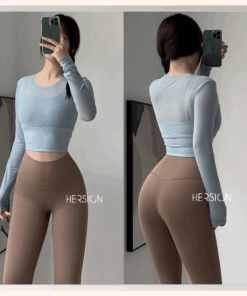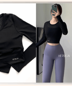 _Áo croptop dài tay 2 lớp. Lớp ngoài: lưới co dãn mềm mát.