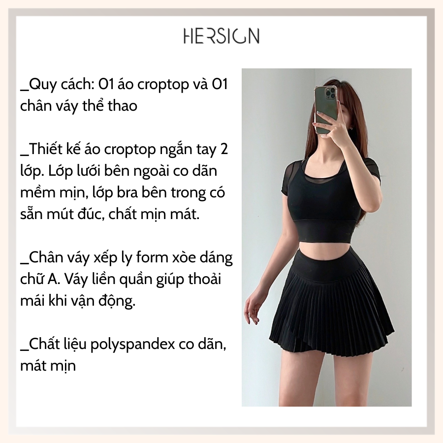 _Quy cách: 01 áo croptop và 01 chân váy thể thao