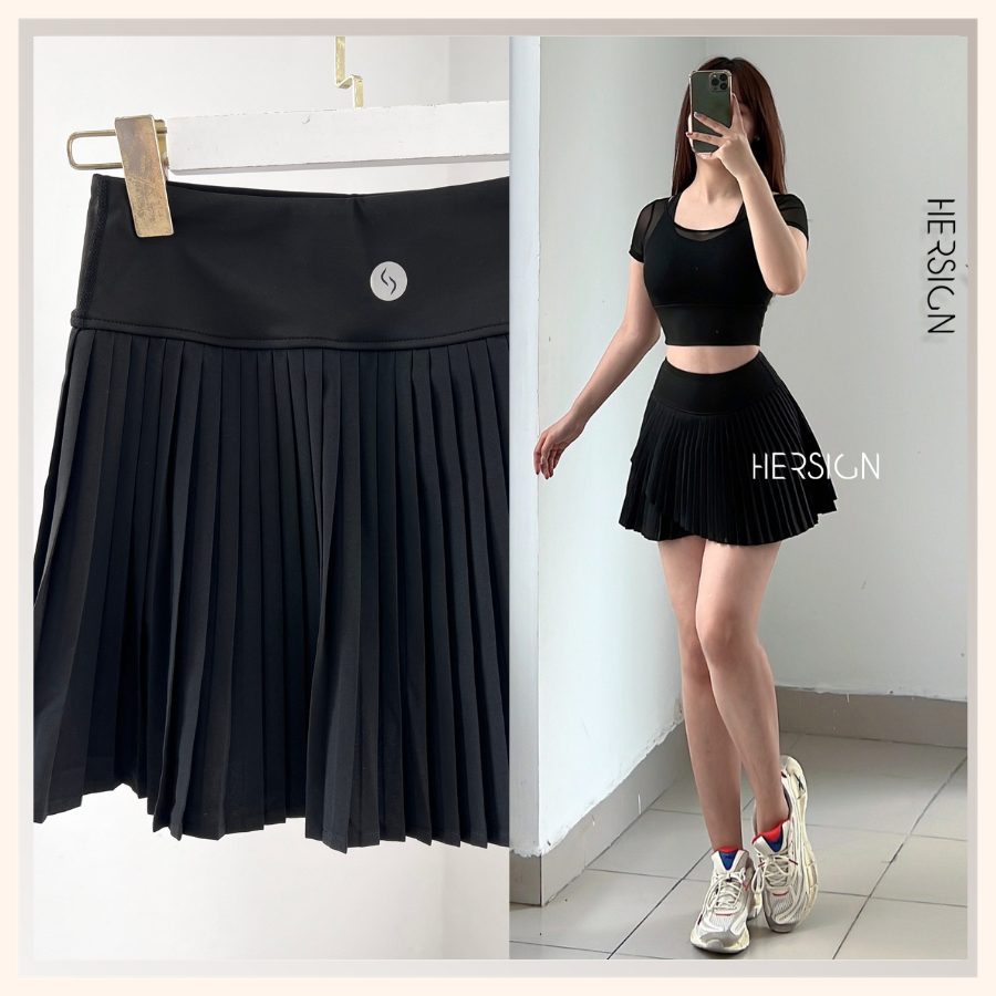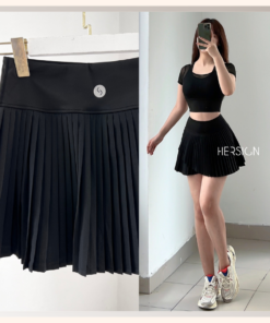 _Chân váy xếp ly form xòe dáng chữ A. Váy liền quần giúp thoải mái khi vận động.