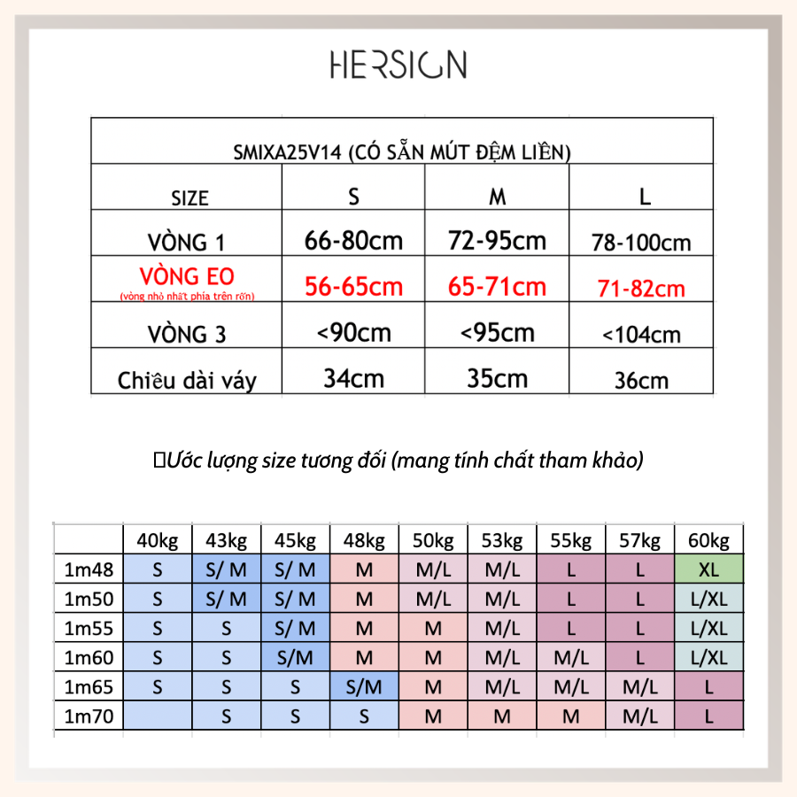 HƯỚNG DẪN CHỌN SIZE: Sản phẩm có 3 size S M L, bạn có thể tham khảo thêm bảng size ở phần hình ảnh sản phẩm và ib cho HERSIGN nếu cần thêm sự hỗ trợ
