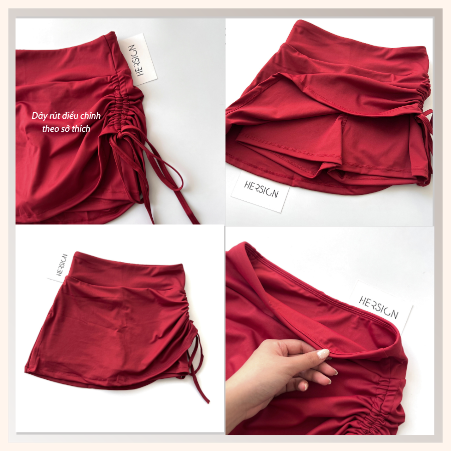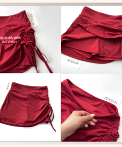 _Chân váy chữ A 2 lớp. Lớp ngoài có dây rút linh hoạt.