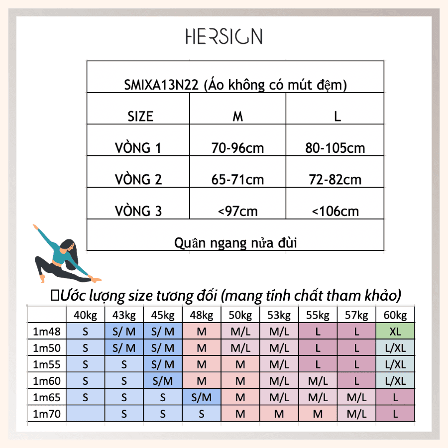 Tips quan trọng: Với sản phẩm dệt kim có tính năng co dãn tốt và dù mặc bó cũng không tạo ngấn gây mất thẩm mỹ, bạn có thể chọn size thoải mái hoặc hơi ôm một chút vẫn rất đẹp. Trong trường hợp bạn còn băn khoăn, hãy ib để HERSIGN hỗ trợ bạn.
