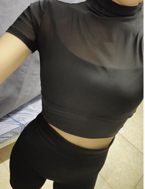 _Áo croptop với lớp lưới bên ngoài co dãn 4 chiều, thoáng mát